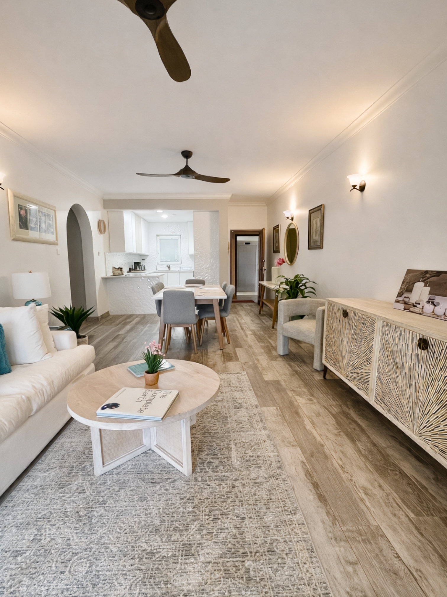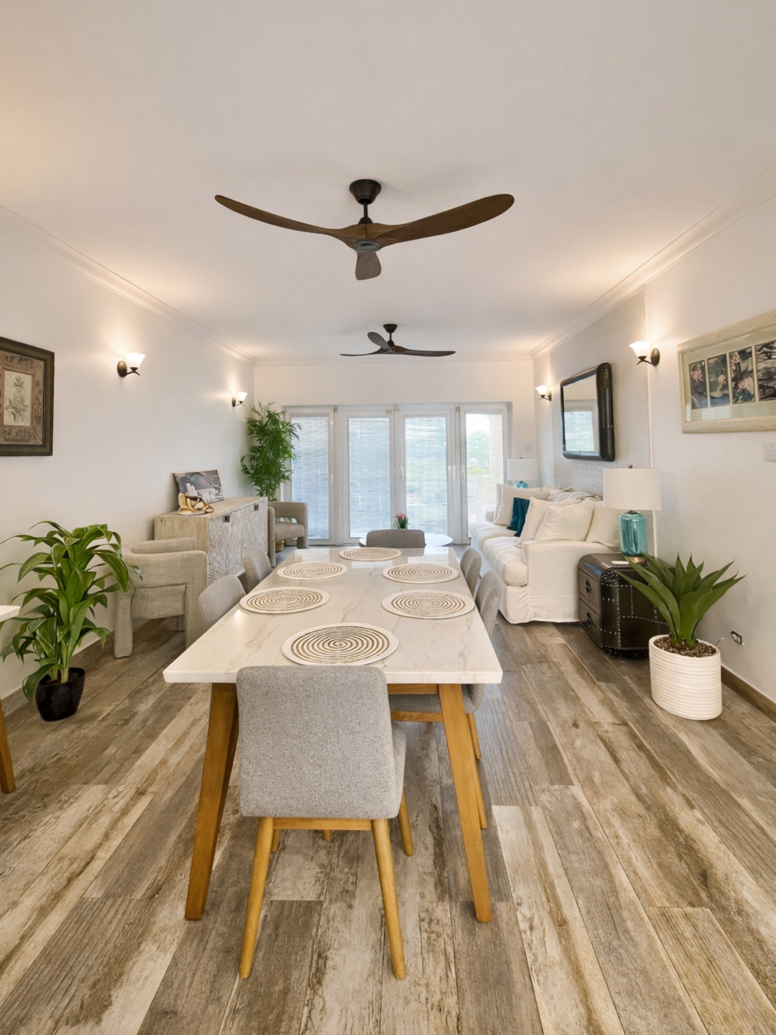 Unit 14 is a beautifully upgraded, fully furnished ground-floor apartment that effortlessly combines contemporary comfort with tropical sophistication. This elegant two-bedroom, two-bathroom residence features a sleek open-plan kitchen that flows into the living area and extends onto a generous covered terrace, ideal for relaxed outdoor dining and entertaining.