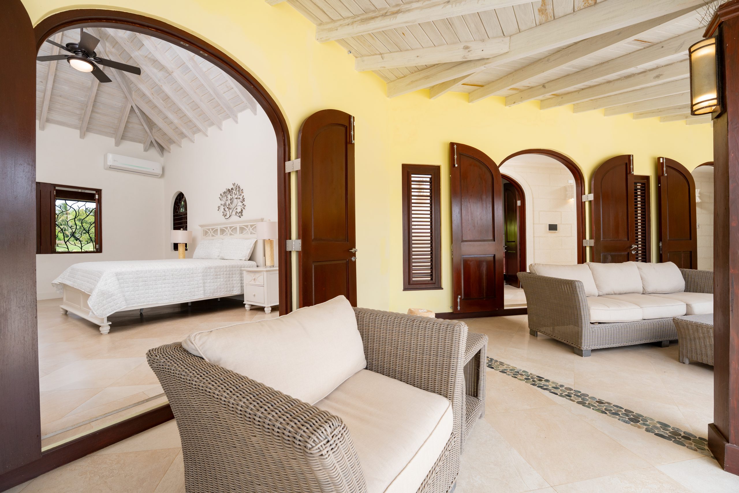 This 4-bedroom, 4.5-bathroom villa is wrapped in privacy and perched where the air is clearer and the world feels quieter. You’re ten minutes from Holetown and Speightstown, a short drive from Welchman Hall Gully, Harrison’s Cave, and the Flower Forest. Close enough to everything. Far enough from all of it.