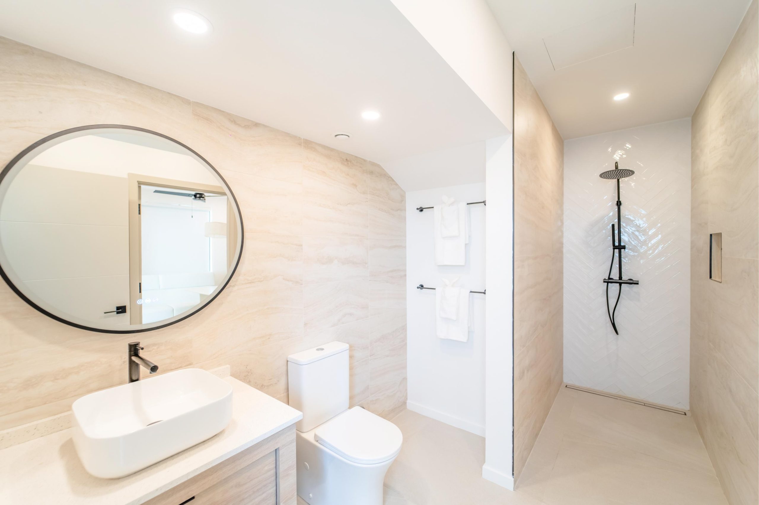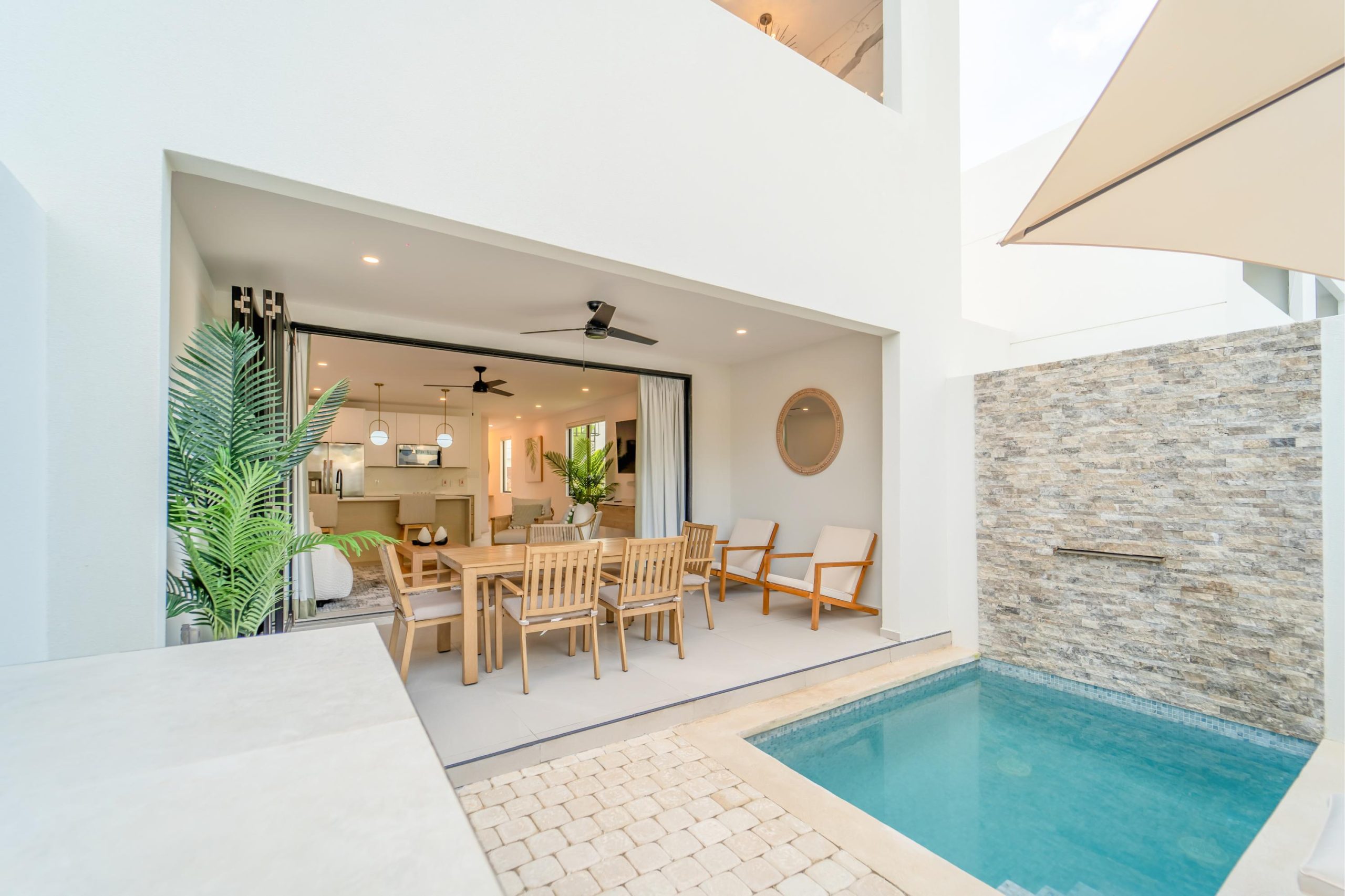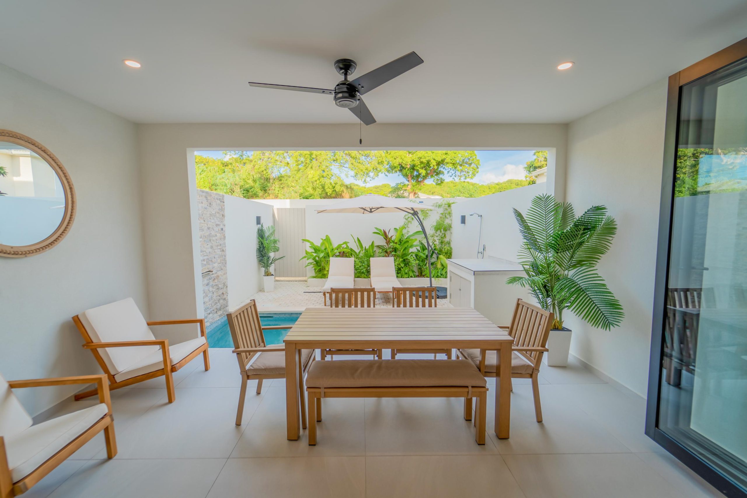 Designed for effortless indoor–outdoor living, Sorrento 14 features a spacious open-plan layout that brings together the kitchen, dining area, and living room in one bright, flowing space. The sleek kitchen includes a stylish island with bar seating—perfect for a quick breakfast, morning coffee, or evening cocktails. Large glass doors lead directly to the outdoor patio, creating a breezy, seamless transition ideal for Caribbean living.